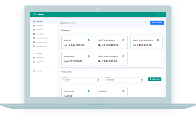 Braavos adalah software bisnis online yang memudahkan pencatatan operasional usaha anda. Mengawasi kinerja perusahaan lebih mudah sehingga Anda dapat lebih fokus dalam pengembangan bisnis.